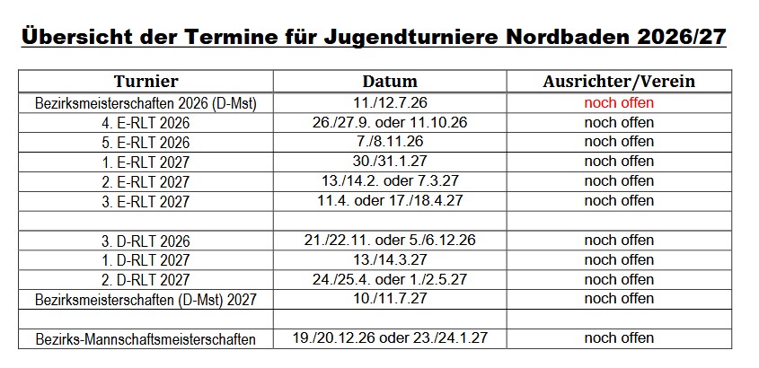Übersicht Termine und Ausrichter 2026/27 Nordbaden