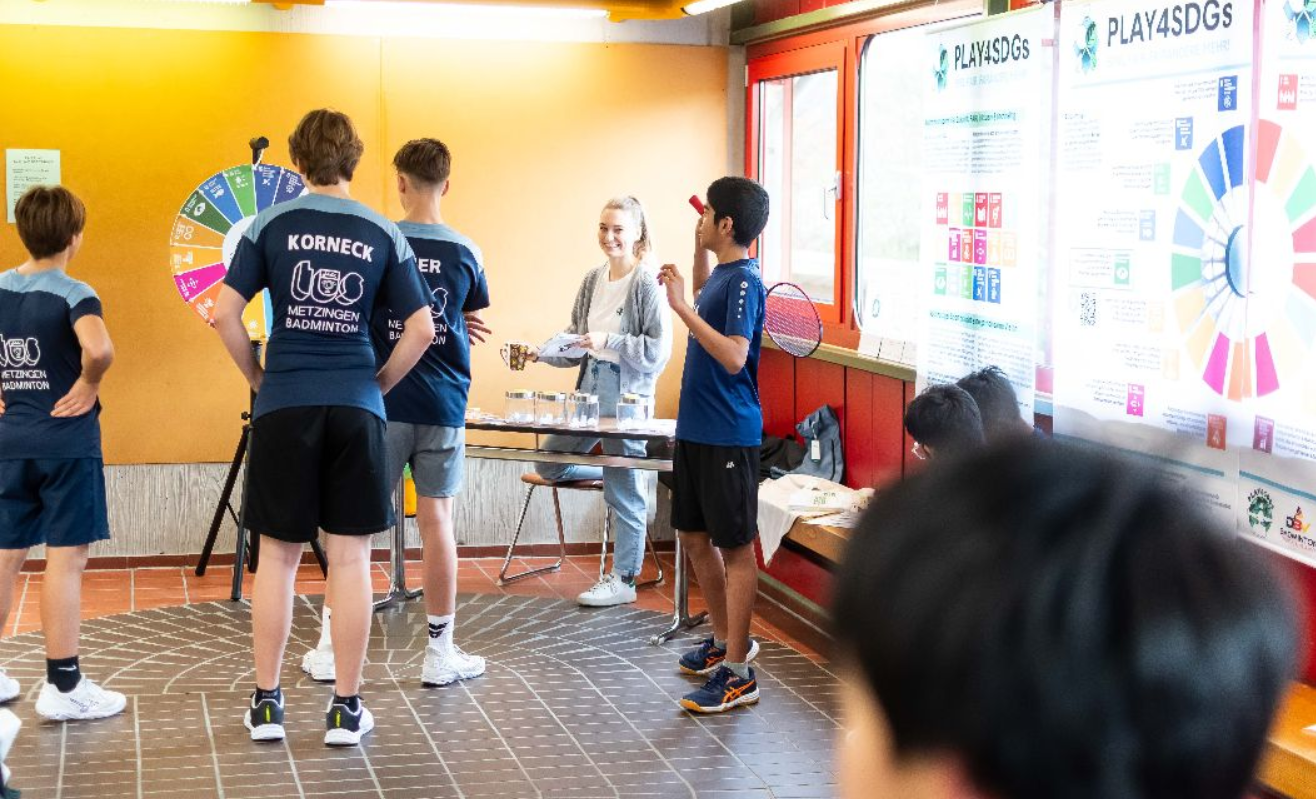 Zusätzlich sorgte ein Glücksrad, eine Wanderausstellung des DBV sowie Flyer und Sticker für eine spielerische Auseinandersetzung mit den 17 Nachhaltigkeitszielen der Vereinten Nationen – von Ernährung über Stromverbrauch bis Plastikvermeidung. Die jungen Sportler lernten, wie ihr Handeln im Verein und Alltag zum Schutz von Umwelt und Klima beitragen kann.