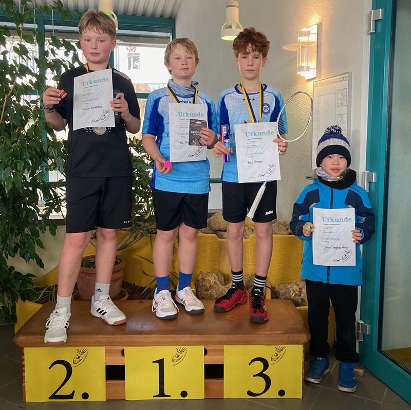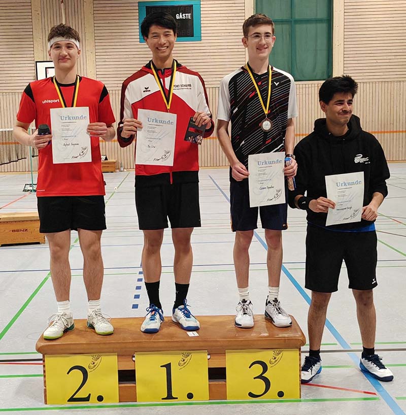 Bei den Jungen U15 schafften es die Top-Gesetzen nicht ins Finale, dieses bestritten der an drei gesetzte Junhao Hua aus Kirchheim und der an vier gesetzte Frieder Hofmann vom TUS Stuttgart. Mit 15:7 und 15:4 lies Junhao nichts anbrennen und konnte sich später die Goldmedaille umhängen lassen.