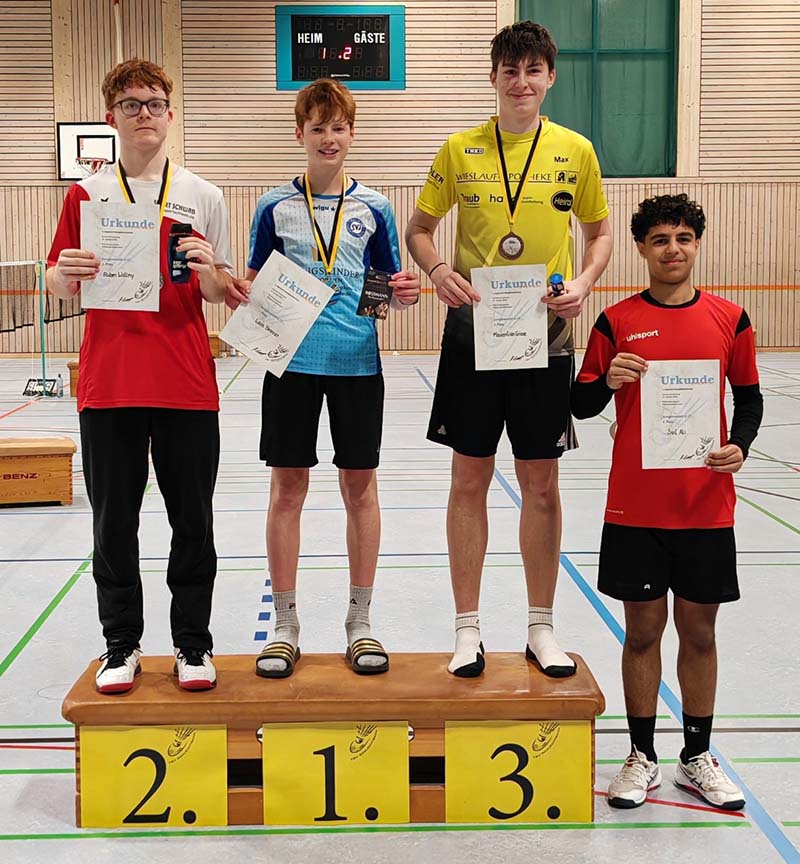 Das größte Starterfeld an diesem Tag bildeten die U17er Jungs. Ganze 22 Spieler waren gemeldet. Der an eins gesetzte Louis Bronner aus Illingen spielte sich mühelos bis ins Halbfinale vor. Hier wartete mit Maximilian Griese ein Lokalmatador vom TSV Schlechtbach. Maximilian spielte sich als ungesetzter Spieler mühelos ins Halbfinale vor und machte es dort dem Illinger in drei knappen Sätzen schwer. Auch im Finale musste Louis die volle Distanz gehen, der an zwei gesetzte Ruben Wollny aus Fellbach bot ordentlich Parolie: 13:15, 15:14 und 15:8 der Endstand für Louis Bronner.