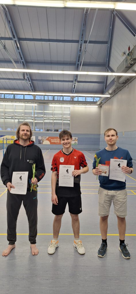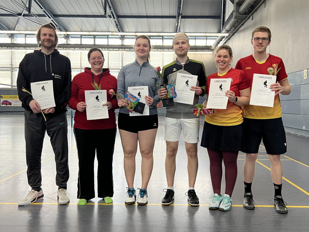 Beim 3. D-RLT Nordbaden O19 in Nußloch wurden zunächst am Morgen die Mixed gespielt, leider ohne Klasseneinteilung, da es nur 2 Meldungen für die B-Klasse gab und die Klassen zusammengelegt werden mussten. Insgesamtgingen 11 Mixed an den Start. Im Finale sicherten sich Manuel Beinert und Sina Wille von der TSG Dossenheim den 1. Platz im Finale gegen Marcus Bayer und Melanie Senst vom BSV Eggenstein-Leopoldshafen. Den 3. Platz belegten Laura Hahn und Daniel Badstöber (DJK/Fortuna Edingen-Neckarhausen / TV Neckargemünd).