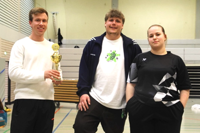 Gegen 14.30 Uhr fanden die Siegerehrungen der Mixed statt. Danach ging es mit den Damen- und Herren-Doppel weiter. Für die Plätze 1-3 gab es Preise, welche durch eine Tombola verlost wurden. Die Preise wurden von Victor, Leitz Acco Brands, der Mühle Gessmann, Siam Sport, Pflegeprodukte von Mann & Schröder, SebaMed und 6-er Bier Träger von Häffner Bräu zur Verfügung gestellt. Die S-Klasse wurde mit Preisgeld und Sachpreisen ausgezeichnet. Es wurden Preise im Wert von mehr als 650€ ausgegeben.