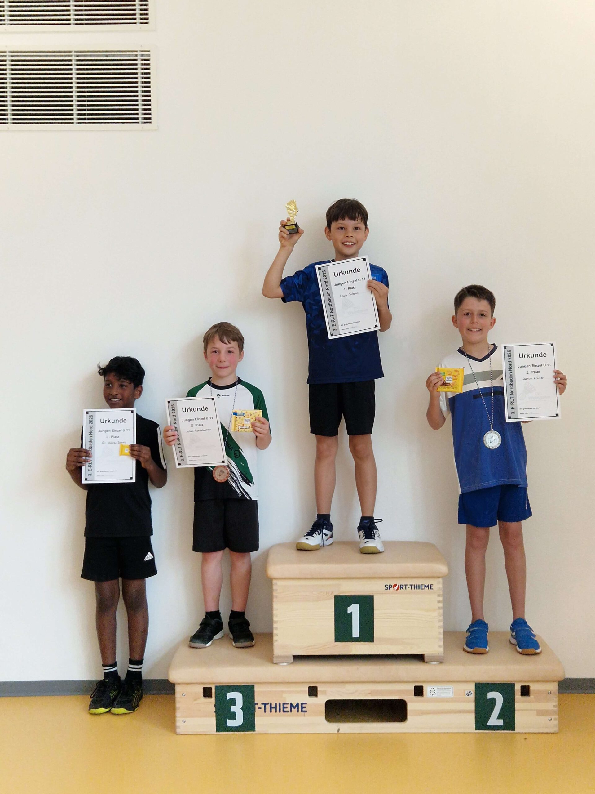 | JE U11 1 Louis Saleem TGS Offenbach-Bieber 2 Joshua Krämer SG Hemsbach 3 Julian Röhrnbacher BSpfr. Neusatz 4 Sri Vaibhav Bandla TSV Racket Center Nußloch | ![]() |