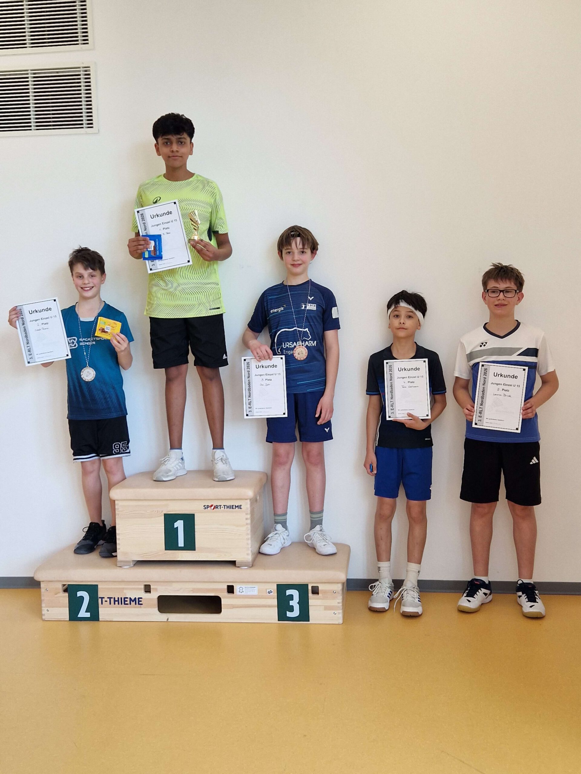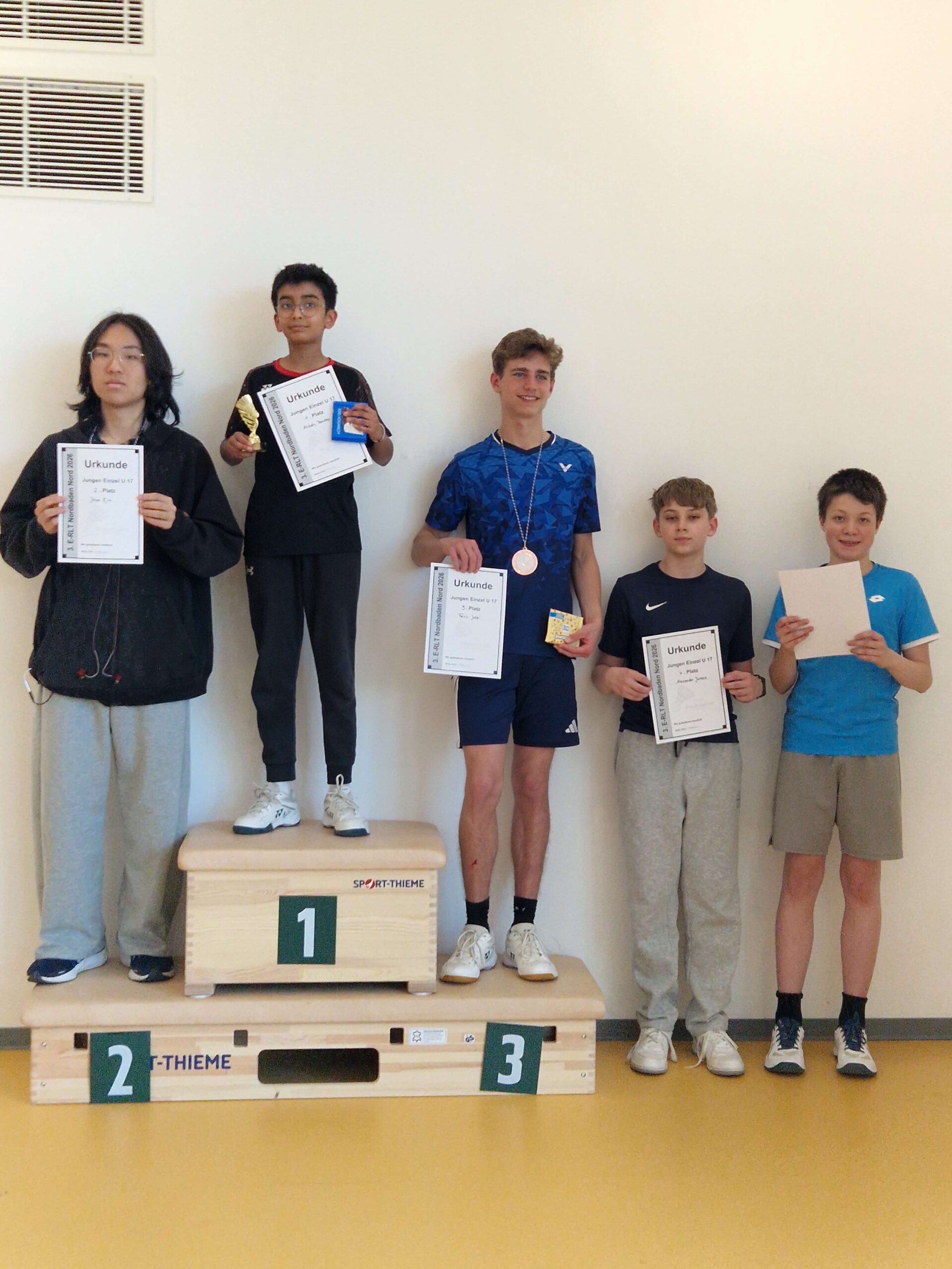 | JE U15 1 Arnav Rajesh Rao TSG Heilbronn 2 Noah Ronai SSV Waghäusel 3 Ole Suhr 1. BC Sbr.-Bischmisheim 4 Taiki Wortmann TSG Heilbronn | ![]() |
