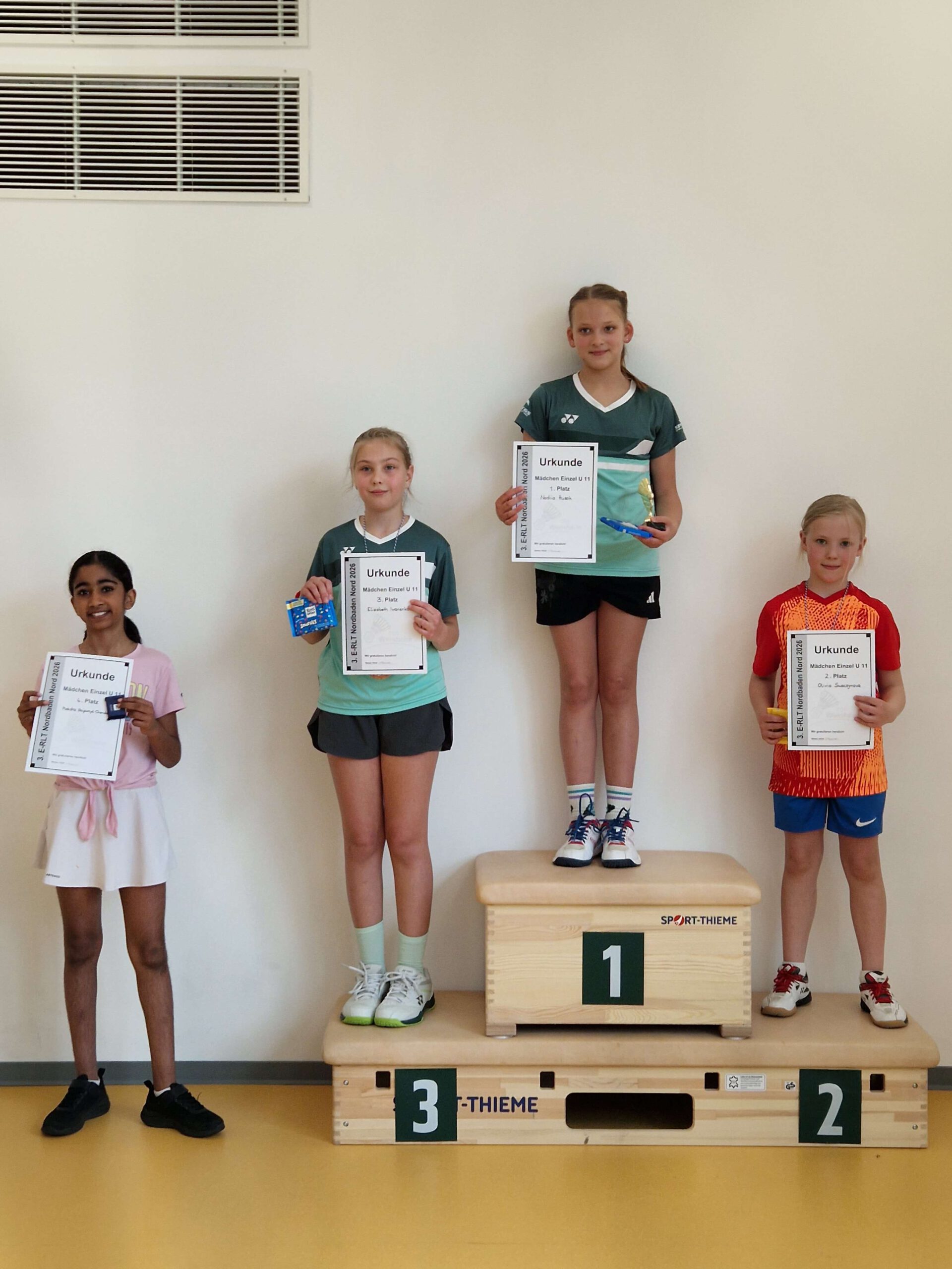 ![]() | ME U11 1 Nadiia Husak TSG Weinheim 2 Olivia Swaczynova TSG Dossenheim 3 Elizabeth Iwanenko TSG Weinheim 4 Moksha Naipunya Cherukumilli TSV Racket Center Nußloch |