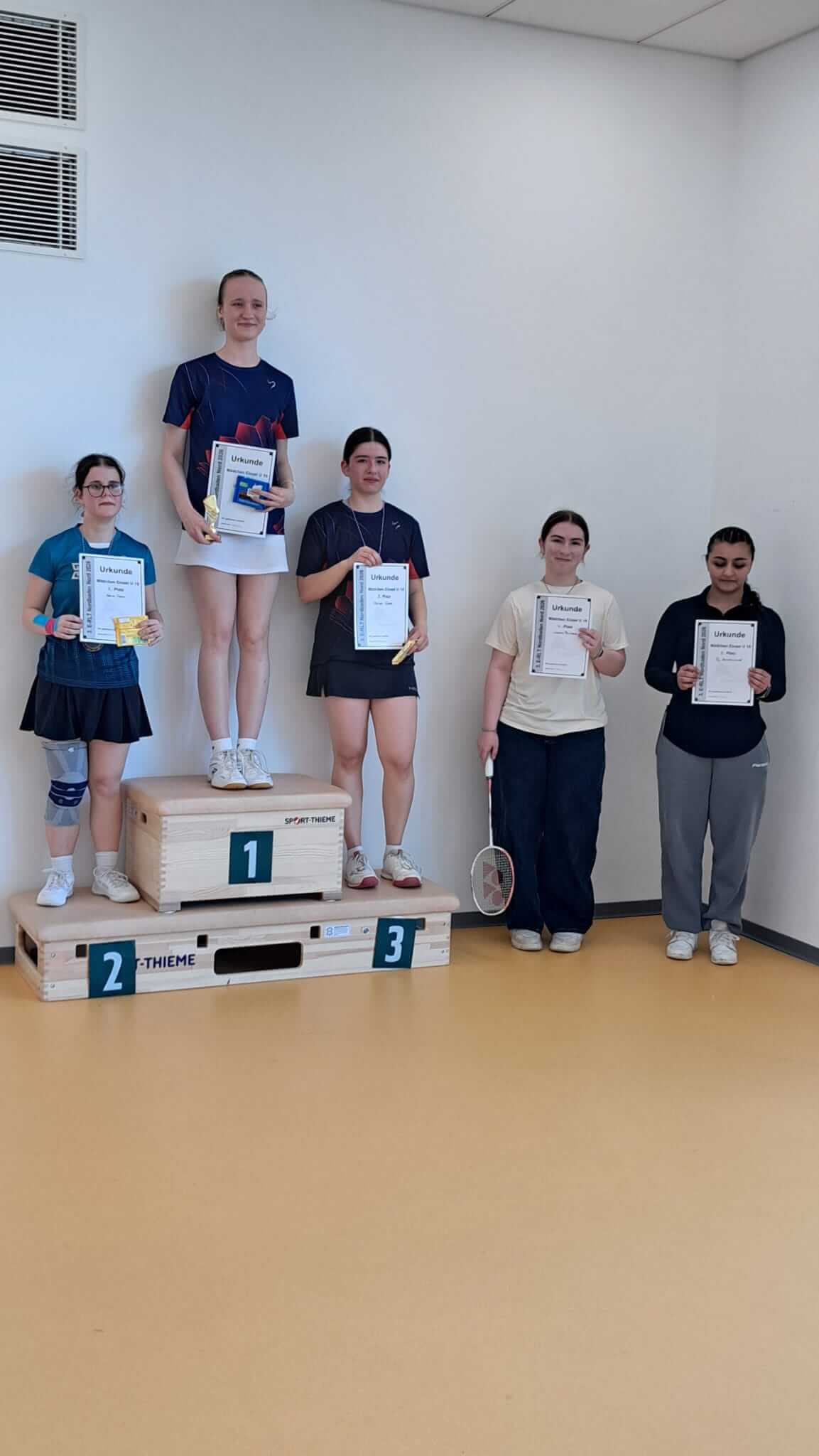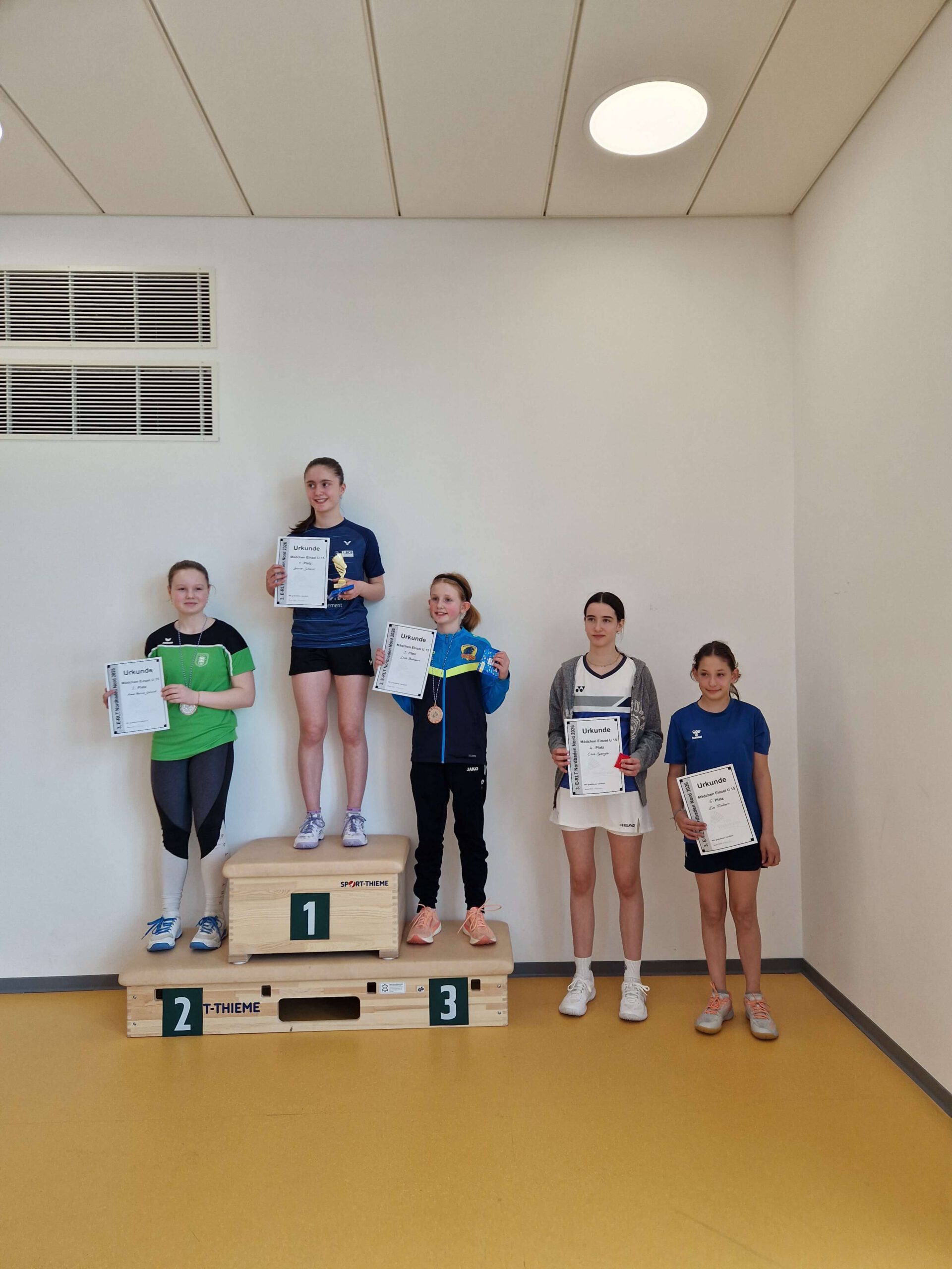 ![]() | ME U15 1 Leonie Scherer 1. BC Sbr.-Bischmisheim 2 Anna Paulina Schmidt TV Helmsheim 3 Linda Birnbaum TV Bad Rappenau 4 Clara Sofia Ocana Spengler SG Hemsbach |