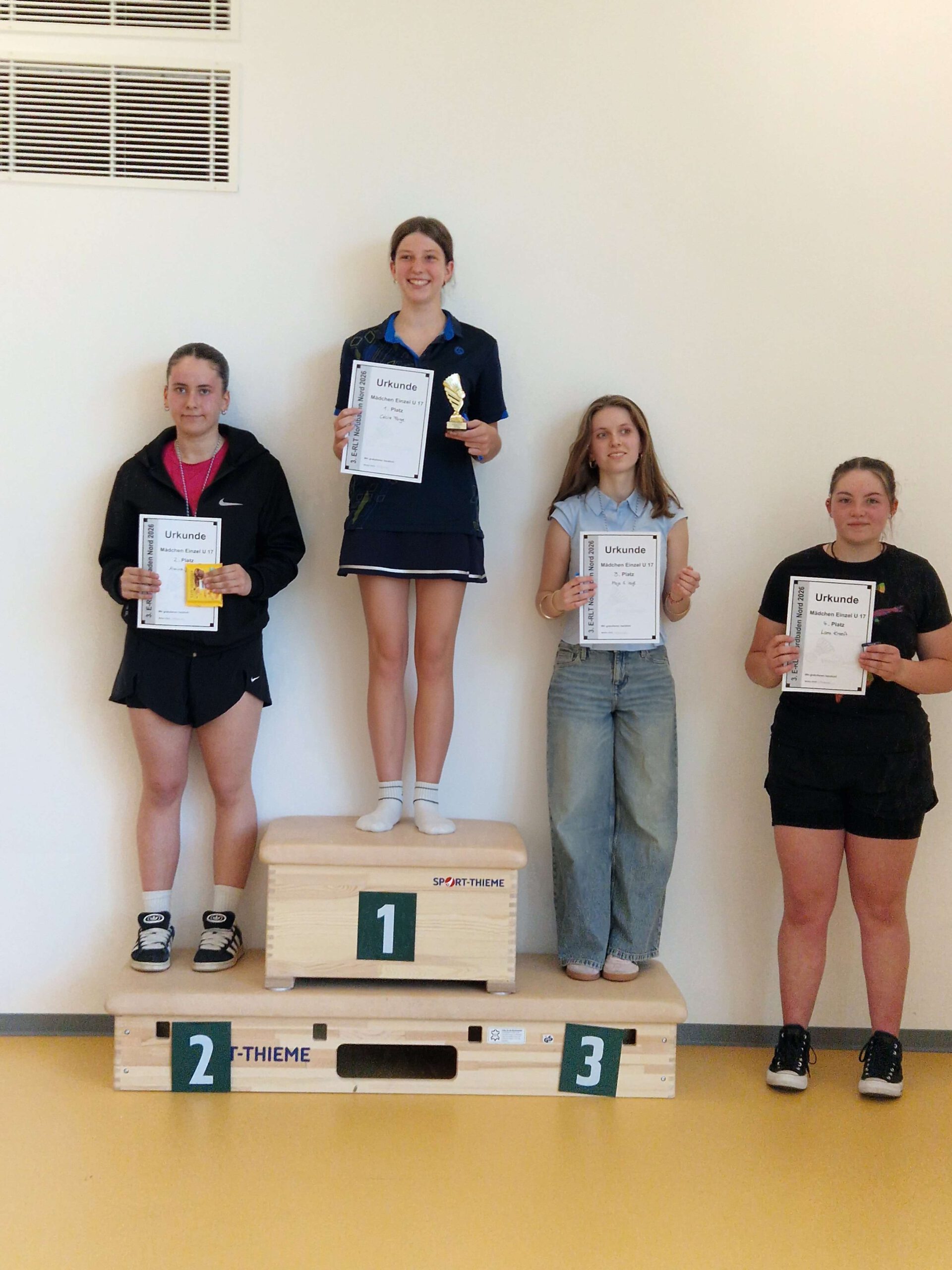 ![]() | ME U19 1 Isabell Hildebrandt BSV Eggenstein-Leopoldshafen 2 Xenia Desin SSV Waghäusel 3 Melissa Wiese BSV Eggenstein-Leopoldshafen 4 Lorena Privitera TV Mannheim-Waldhof |